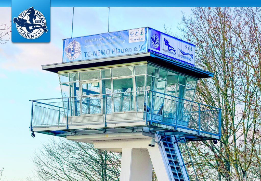 Ein weiteres Highlight zum Jahresausklang war die Enthüllung der neuen Beschriftung unseres Rettungsturms. Damit ist dem Tauchclub NEMO auch 2026 die Aufmerksamkeit der vorbeifahrenden Schiffe, Boote und Wassersportler sicher.