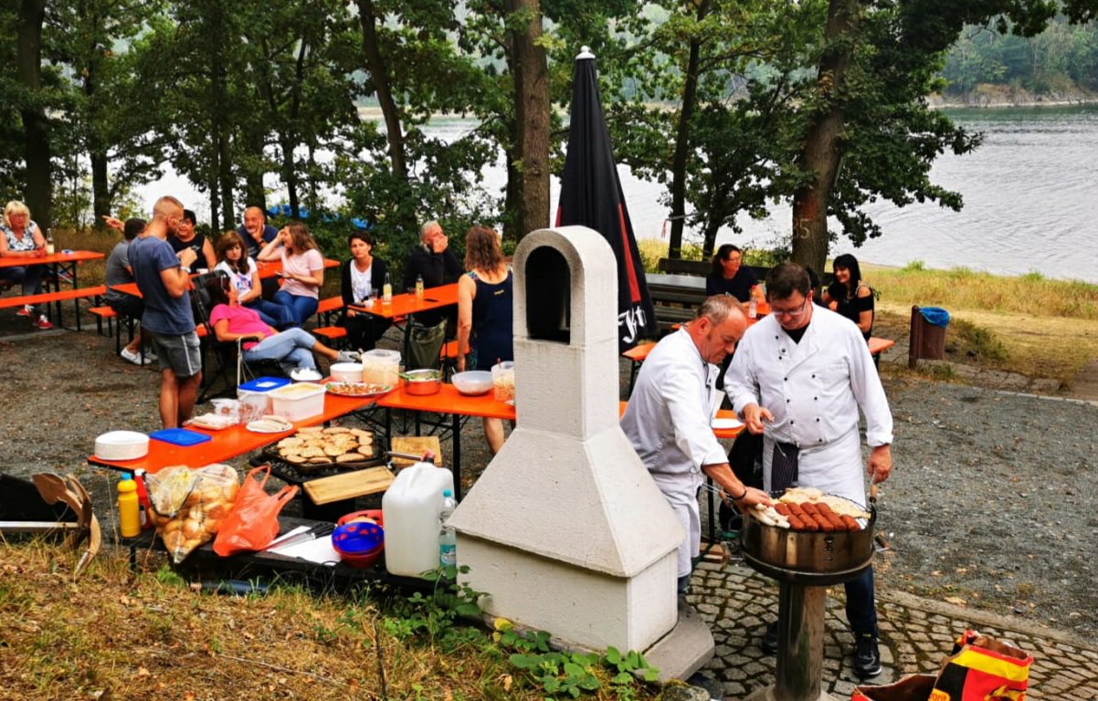 Gansgrün- Unter Voraussetzungen die uns bis dato in dieser Form nicht bekannt waren, ging am vergangenen Wochenende unser kleines Sommerfest über die Bühne. Denn wer hätte noch vor einem Jahr gedacht, dass sich jedes anwesende Mitglied in Gästelisten einträgt, das Reinigungspläne erstellt und Desinfektionsmittel bereitgestellt werden müssen. Ich denke, niemand. Doch die Covid-19 Pandemie veranlasste uns zu diesem Handeln, was der Stimmung am Samstag aber keinen Abbruch tat. Im Gegenteil- gut gelaunt und vom Regenwetter unbeeindruckt ließen wir es wieder einmal krachen. Nur diesmal mit etwas mehr ABSTAND.